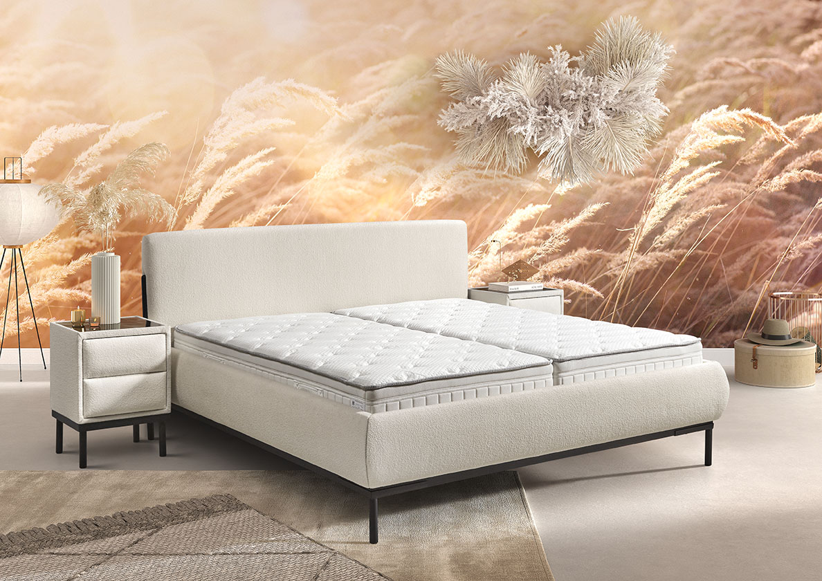 Naast de boxspring modellen heeft Cinderella nu ook een ledikant geintroduceerd! Een gestoffeerd ledikant met mooie ronde vormen en zwarte details. Zo heb je de uitstraling van een boxspring maar blijven je matrassen mooi in de ombouw liggen.