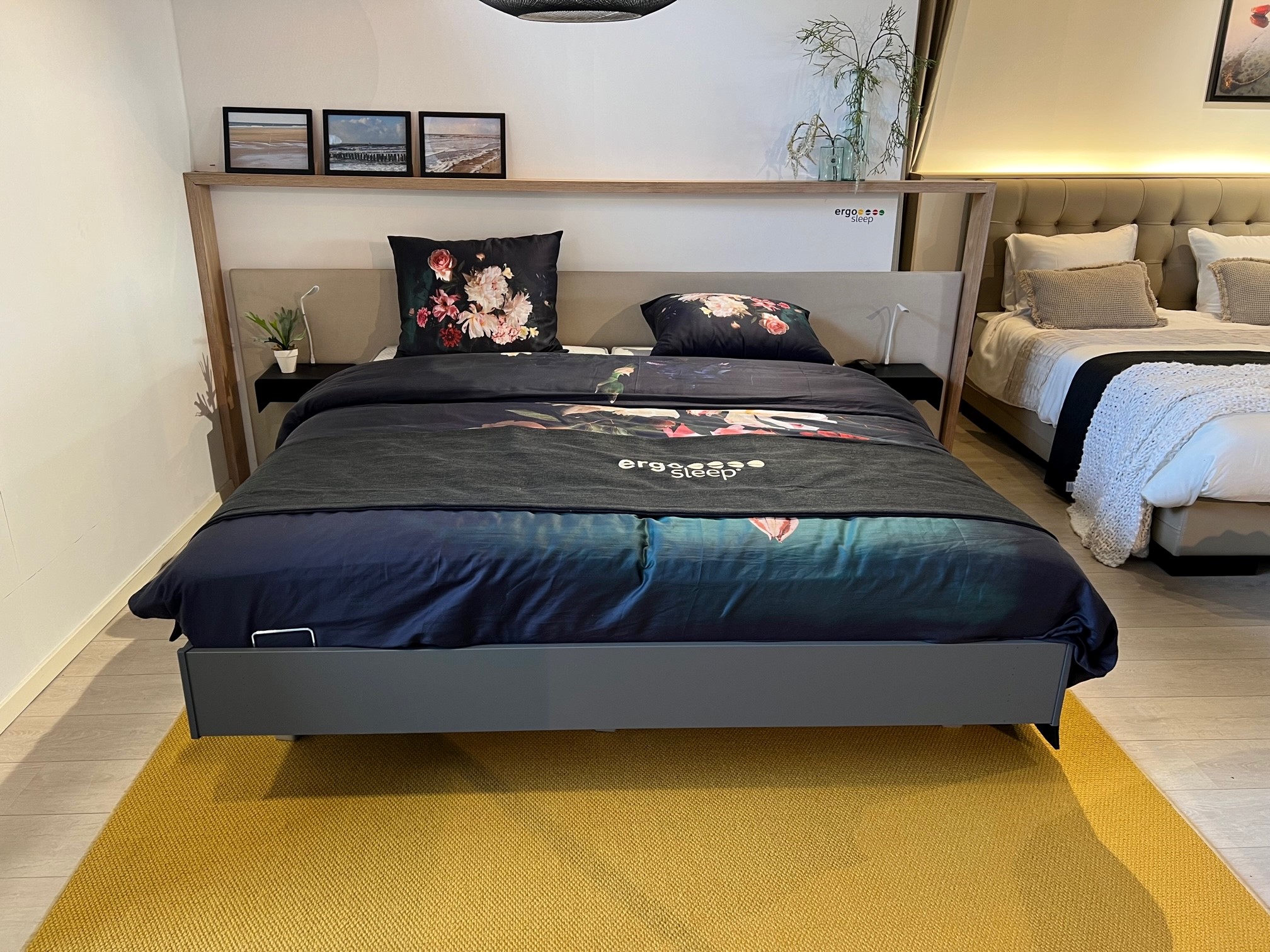 Dit ledikant van Ergosleep heeft een gelakte bed omranding in de kleur antraciet. Het hoofdbord is 290 cm breed en 90 cm hoog.