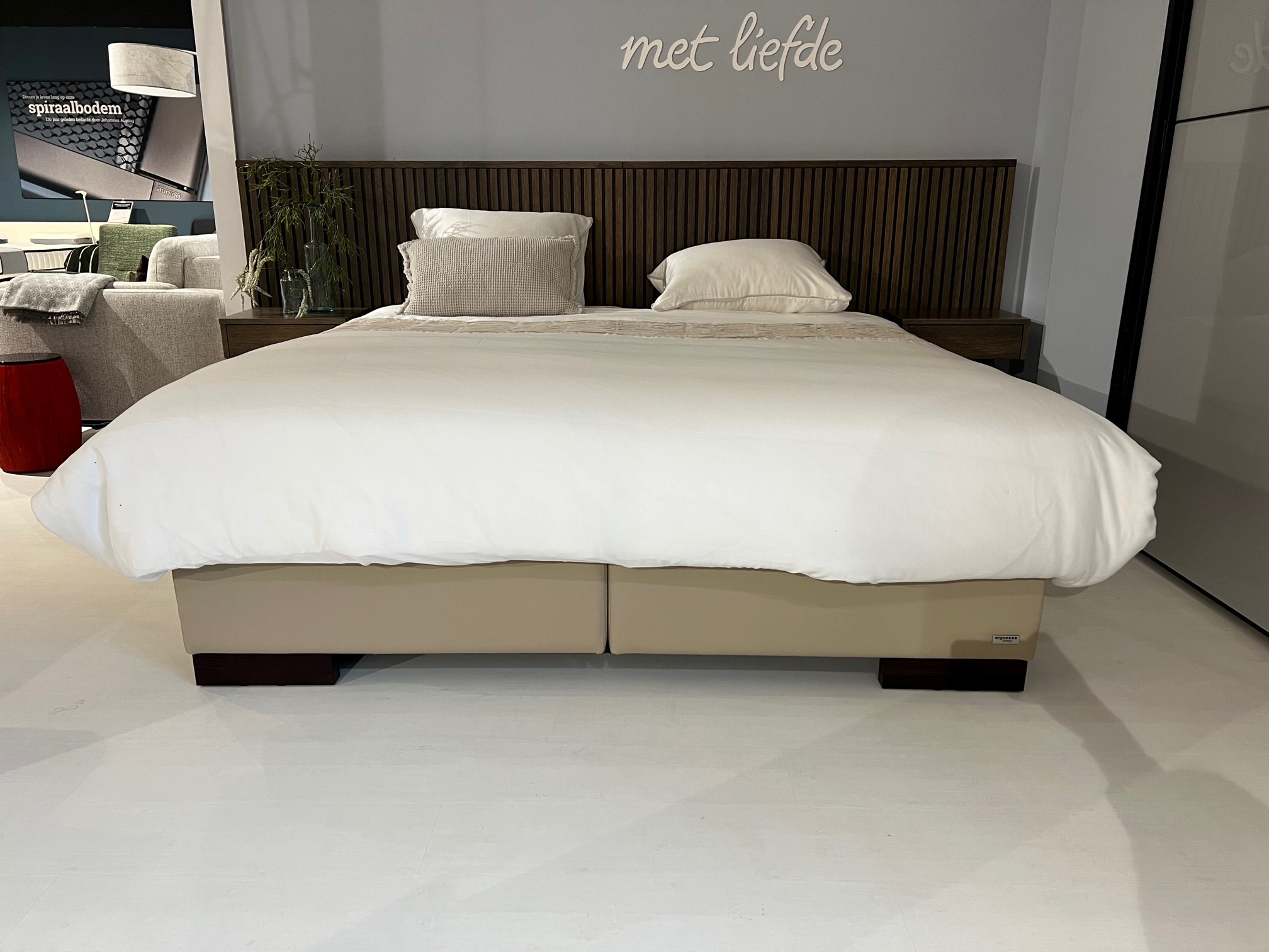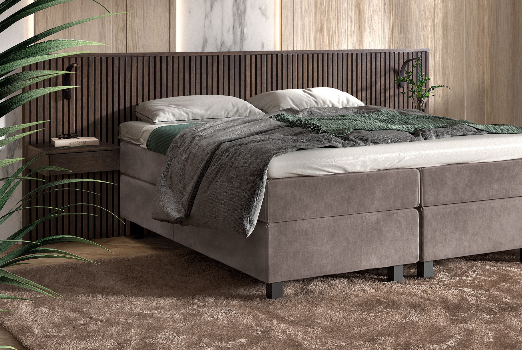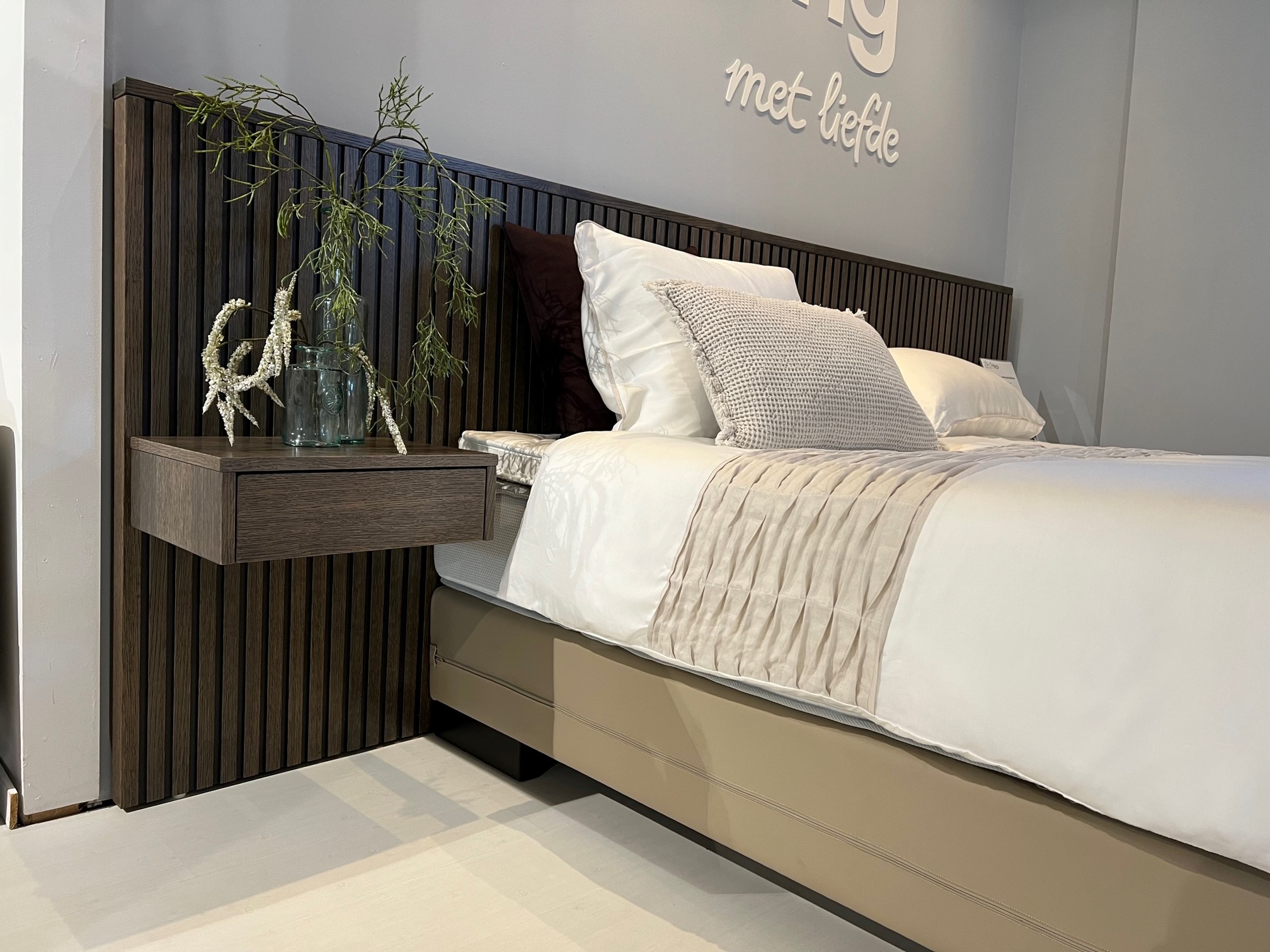 Naast het ledikant Marriot hebben we het hoofdbord ook gecombineerd met een boxspring. Zo kun je het hoofdbord samenstellen met het comfort wat bij u past! Je kunt voor een lichtere stof gaan zoals op de foto, maar je kunt natuurlijk ook voor een bijpassende kleur gaan wat het meer één geheel maakt.