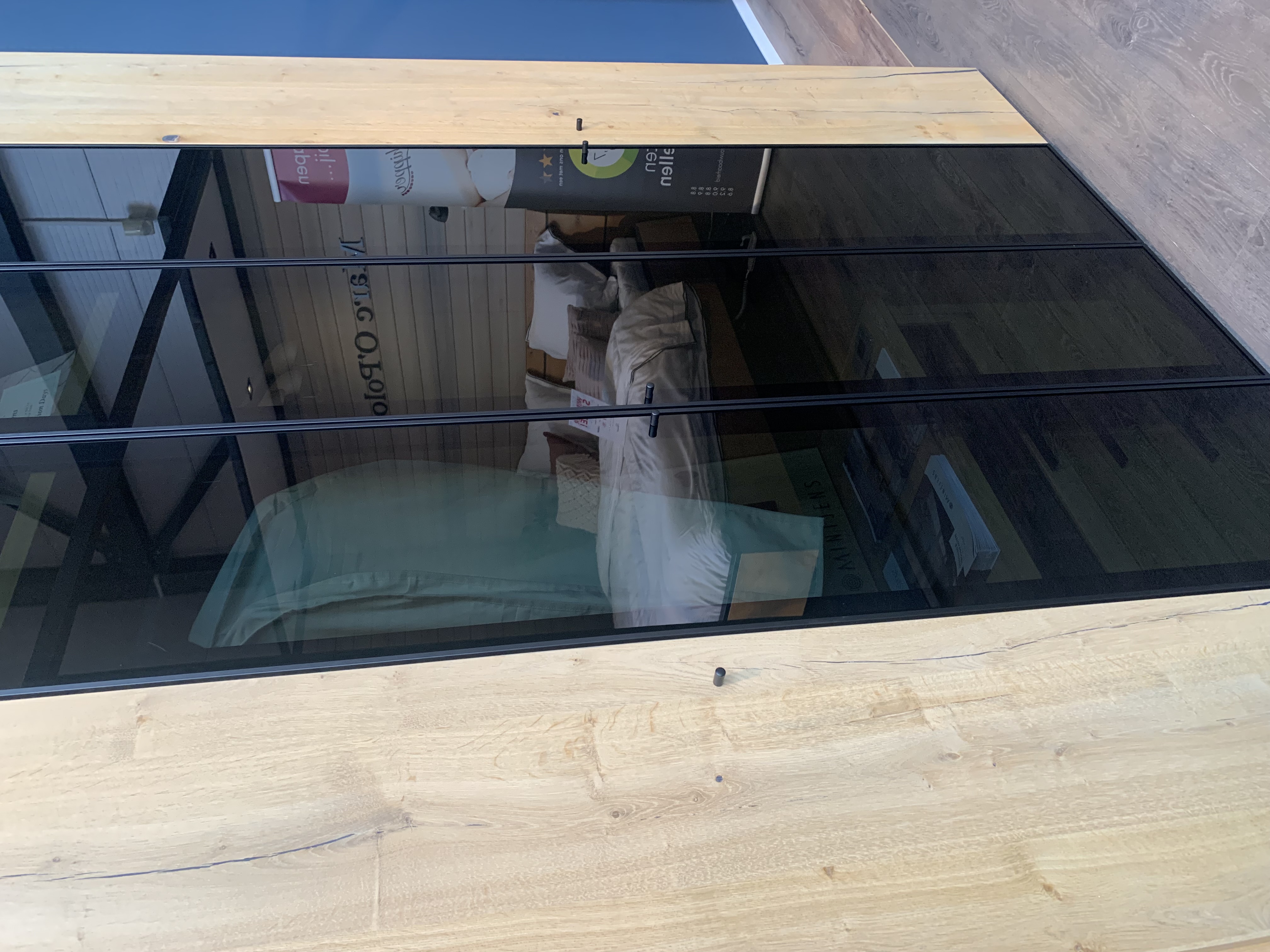 2 planken achter het smoked glas hebben een led strip, dit is te zien op de foto.