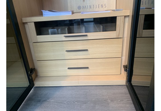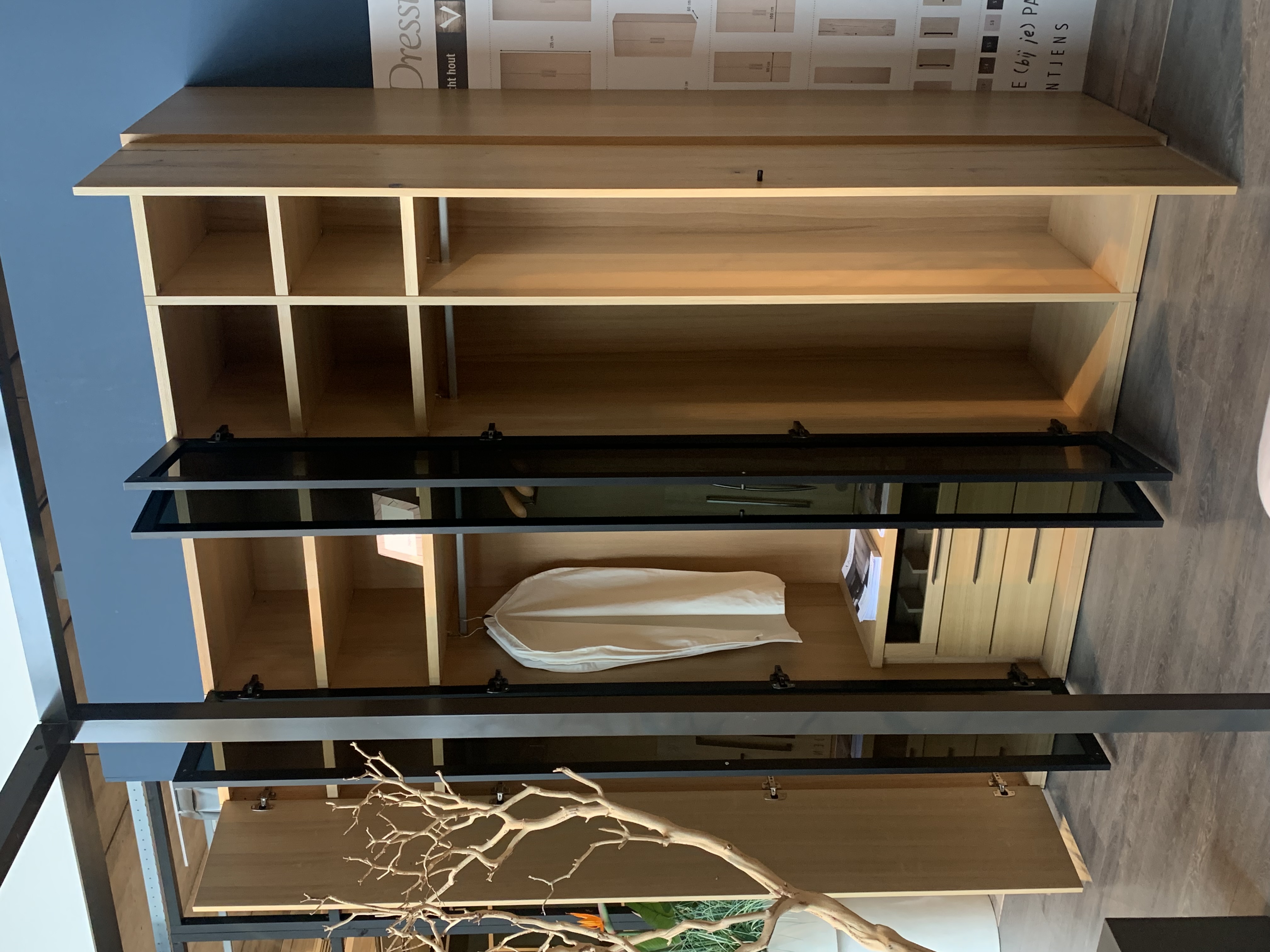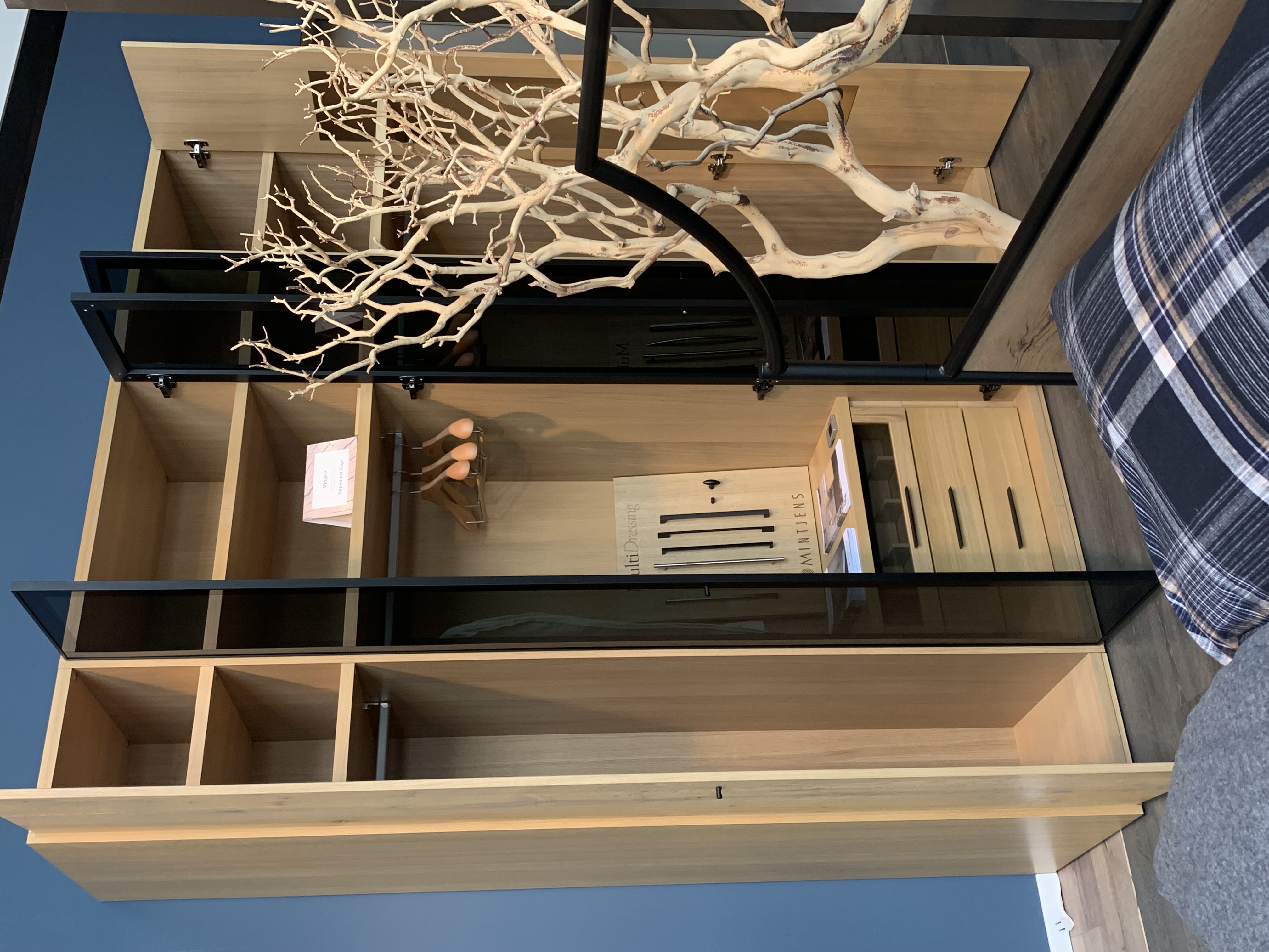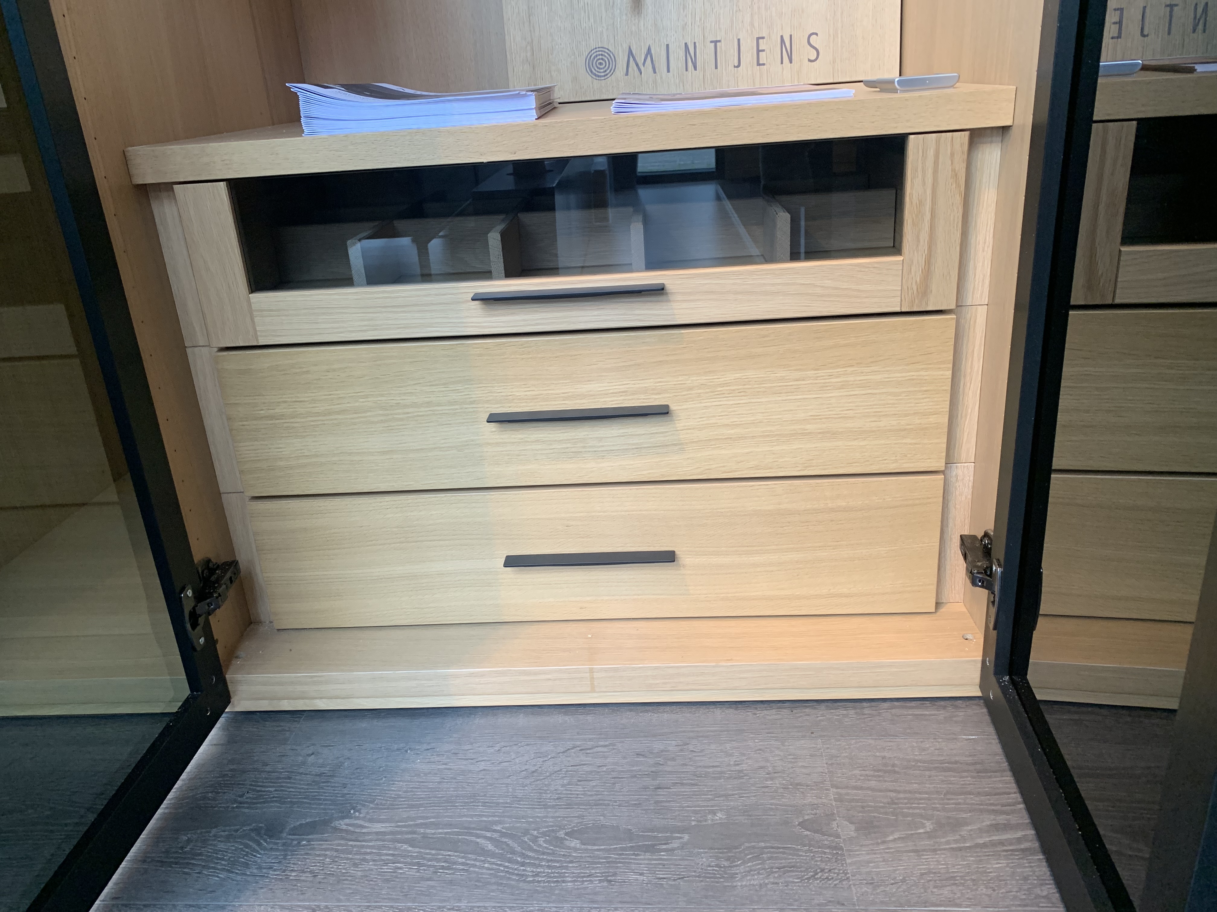 Compleet inclusief. 3 lades van 80 cm breed, 3 roedes van 40 cm, 1 roede van 80 cm, 6 legplanken van 40 cm en 2 legplanken van 80 cm.