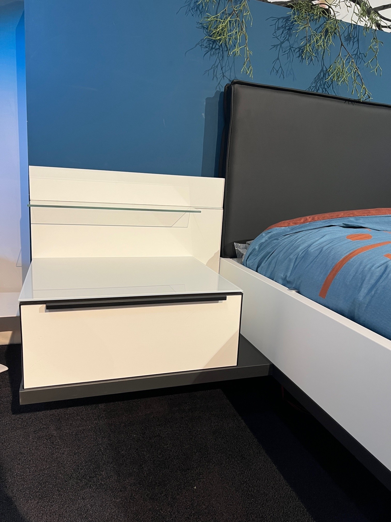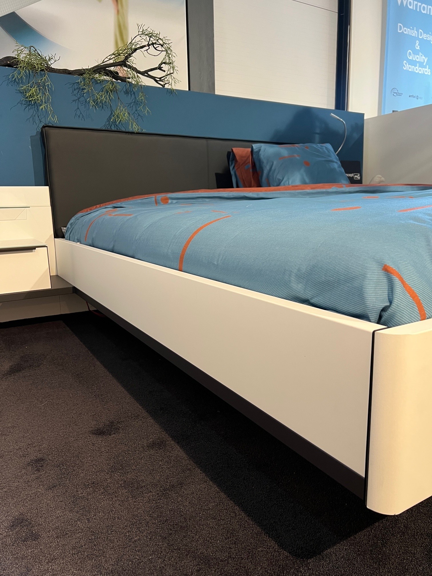 Ledikant 180x210 Concept Me uitvoering 1, Kleur: Poolwit met basalt/zwart, Incl. nachtkastjes en verlichting