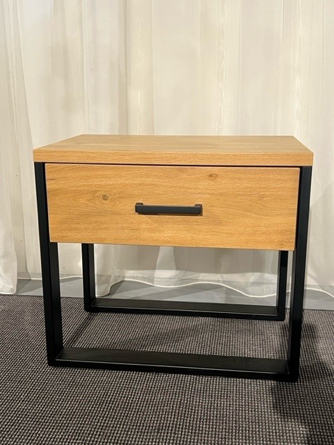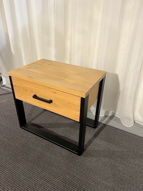 Nachtkastjes Bronx eiken fineer met mooie zwarte stalen details.
