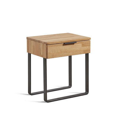Nachtkast Lucas heeft een natuurlijk karakter en is vervaardigd van eerlijke, echte materialen zoals ( mat gelakt) massief eiken en gepoedercoated metaal.